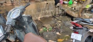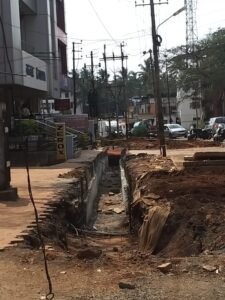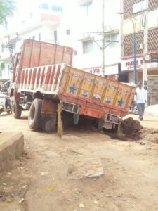 A loaded truck got stuck which was passing through the uneven road which is under progress under smart city work!